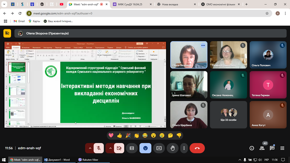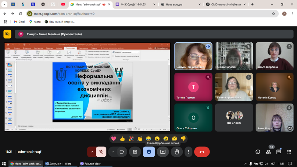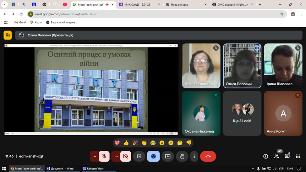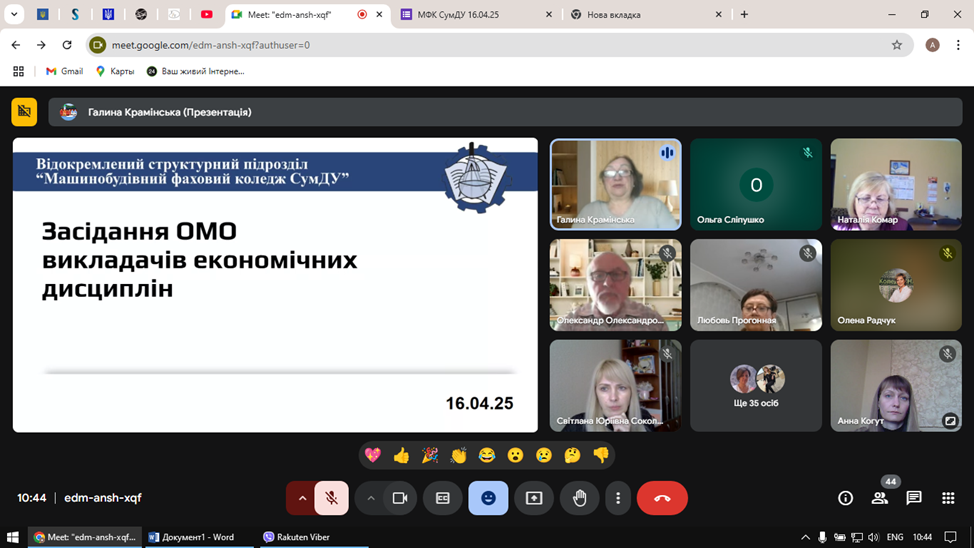 16 квітня 2025 року відбулося онлайн-засідання обласного методичного об’єднання (ОМО) викладачів економічних дисциплін. Викладачі коледжів виступили з доповідями на тему: