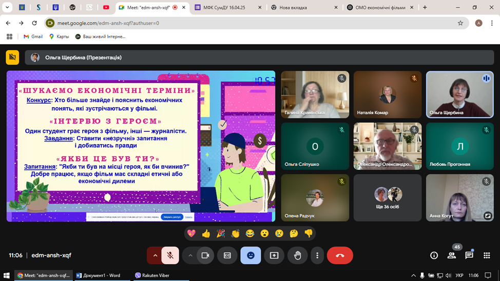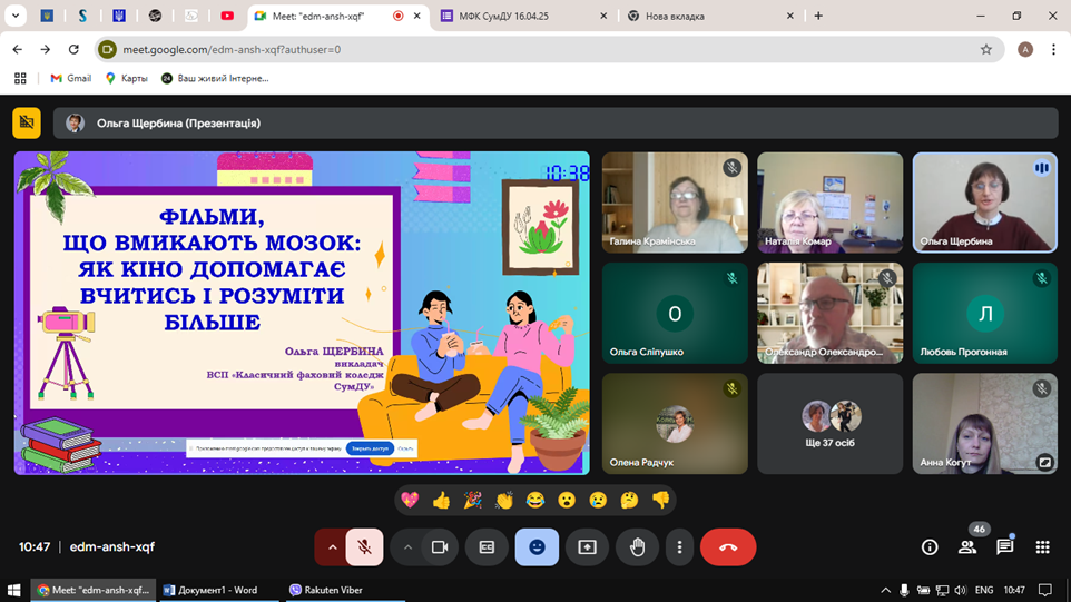 1) “Фільми що вмикають мозок: як кіно допомагає вчитись і розуміти більше”. У своїй доповіді викладачка акцентувала увагу на важливості використання аудіовізуального контенту в навчальному процесі.