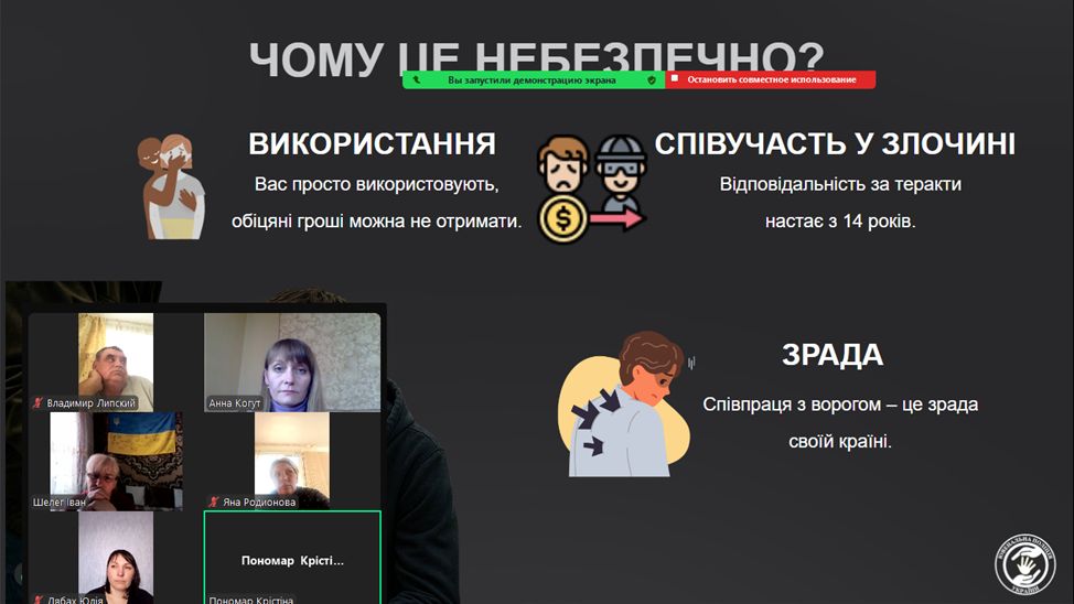 Після загальної частини куратор продовжила спілкування з батьками на важливу тему: «Маніпуляції та вербування: як не потрапити в пастку ворога». Куратор Анна КОГУТ наголосила на необхідності підвищення обізнаності підлітків та їхніх батьків щодо інформаційної безпеки, психологічного тиску, методів маніпуляції та способів вербування, які сьогодні активно використовуються зловмисниками, зокрема в соціальних мережах. Батьки отримали поради, як розпізнати потенційні загрози, на що звертати увагу в поведінці дітей.