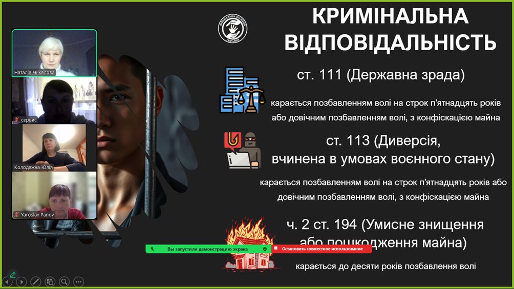 09 травня 2025 року була проведена година спілкування з батьками студентів 34 групи на тему “Булінг. Кібербулінг. Вербування та тероризм серед дітей.” Обговорили основні ознаки та прояви булінгу та кібербулінгу, шляхи попередження таких ситуацій та алгоритм дій у разі їх виявлення. Окремо розглянули питання відповідальності та покарання за вчинення таких дій, зокрема адміністративну та кримінальну відповідальність неповнолітніх та їхніх батьків. Також акцентували увагу на небезпеці вербування дітей та терористичних загроз в онлайн-просторі. Кураторка Наталія ЧИКАЛОВА