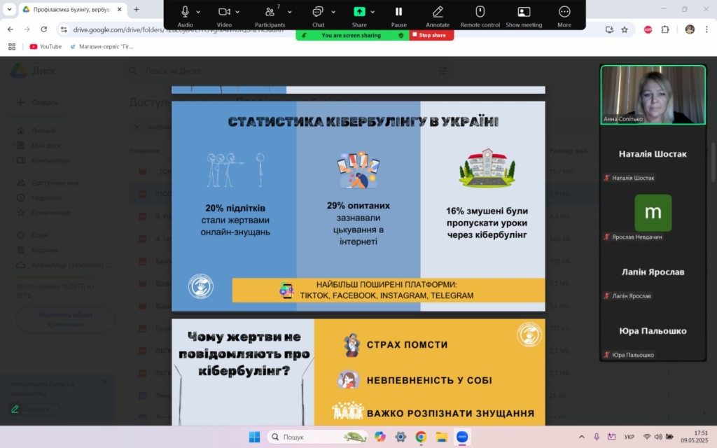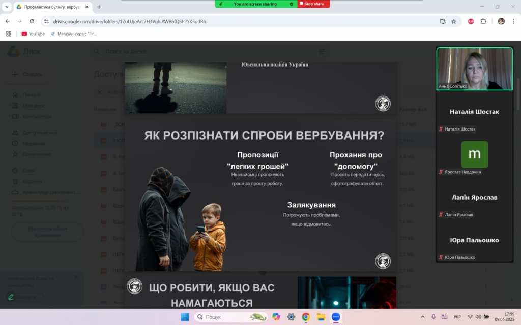 9 травня 2025р. з батьками студентів 24 групи була проведена година спілкування на тему “Булінг. Кібербулінг. Вербування та тероризм серед дітей.” Під час обговорення детально проаналізували ключові ознаки та форми прояву булінгу та кібербулінгу, бо це не просто поодинокі інциденти, а системна проблема, яка може призвести до серйозних психологічних, емоційних та навіть фізичних наслідків для дітей і підлітків. а також наголосили на серйозних ризиках вербування підлітків та потенційних терористичних загрозах у цифровому просторі. Окрім того, розглянули аспекти правової відповідальності та можливих покарань за такі дії, зокрема адміністративні та кримінальні санкції для дітей та їхніх батьків.