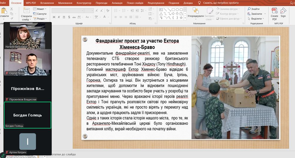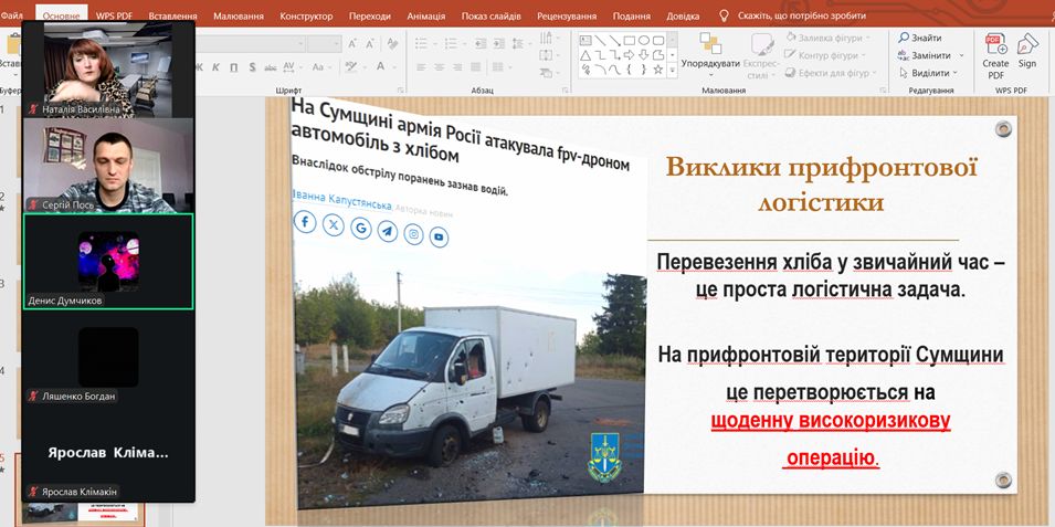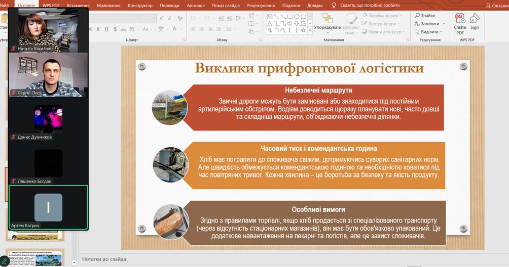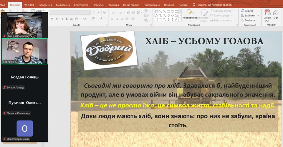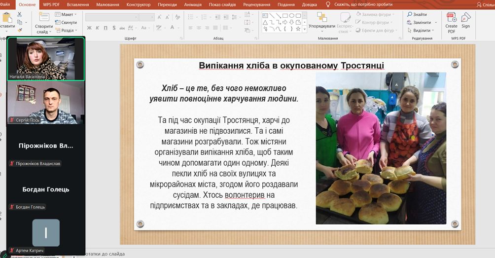 Оскільки їх спеціальність пов`язана з енергоресурсами, вони розповіли, як було налагоджено випікання хліба в перші дні повномаштабного вторгнення у м.Охтирка, розповіли про незламну пекарню «Світанок» у смт. В.Писарівка, а також чого вартував хліб в окупованому м.Тростянець.