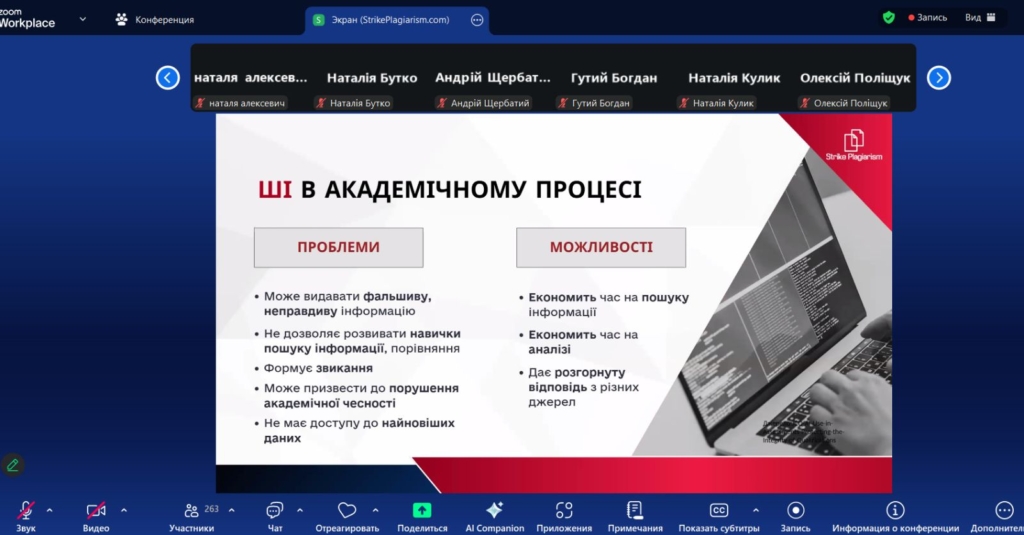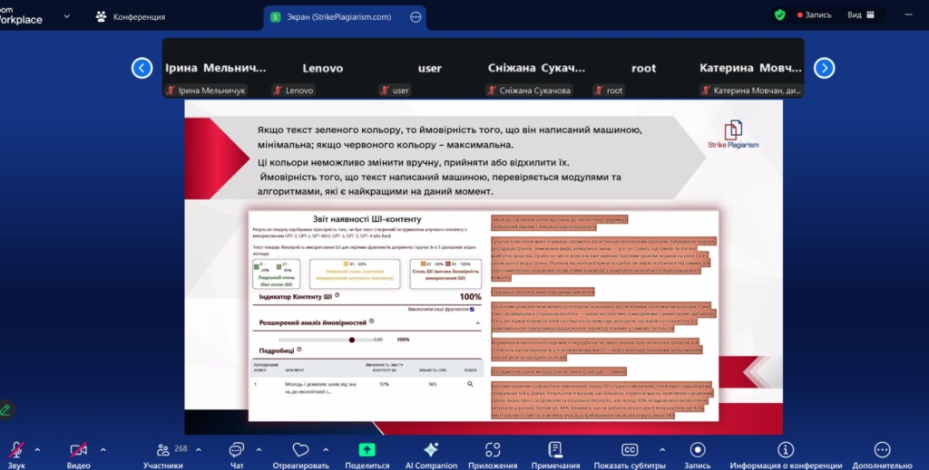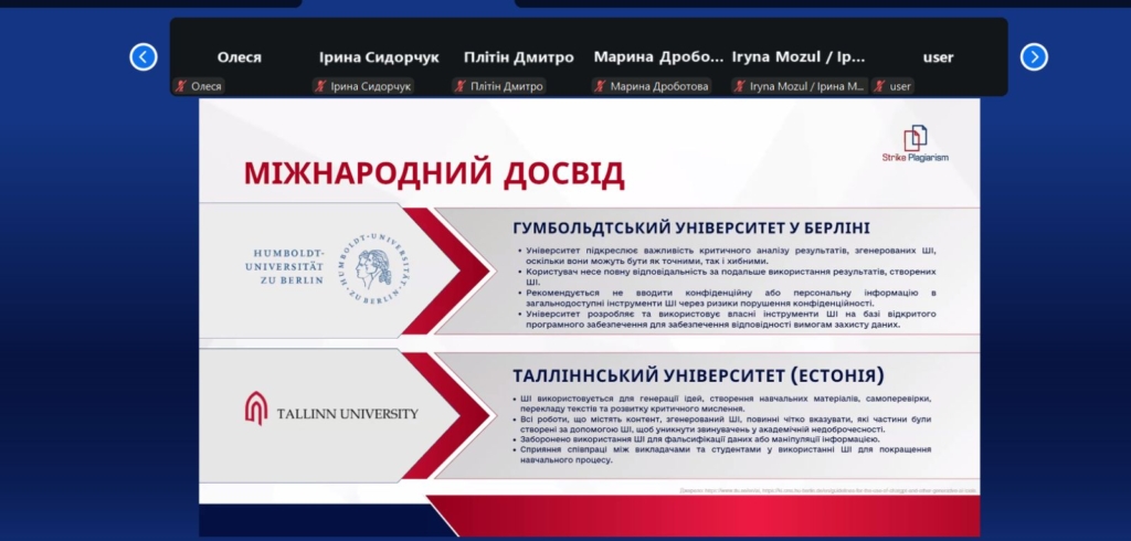 18 грудня 2025 року викладачі коледжу взяли участь у вебінарі «Детекція ШІ та оновлений інтерфейс StrikePlagiarism.com».Під час заходу було представлено практичні приклади використання штучного інтелекту в освітньому процесі, розглянуто сучасні підходи до запобігання зловживанням ШІ, а також детально презентовано оновлений інтерфейс системи StrikePlagiarism.com. Окрему увагу було приділено практичним рекомендаціям для викладачів, адміністраторів і студентів, спрямованим на підвищення академічної доброчесності та ефективне використання цифрових інструментів в освіті.