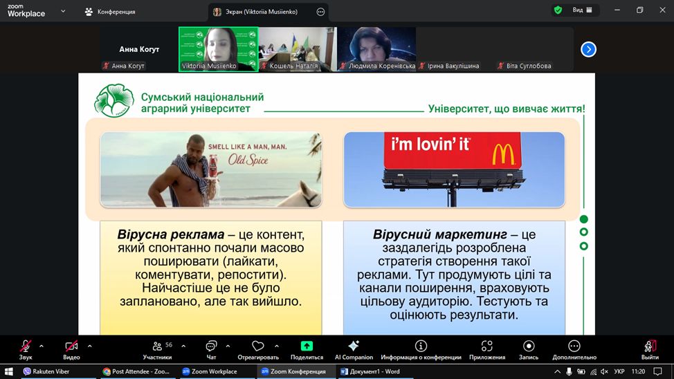 Лекцію провела кандидатка економічних наук, доцентка кафедри маркетингу та логістики Сумського НАУ Вікторія МУСІЄНКО. Під час зустрічі вона розповіла студентам про сутність вірусного маркетингу та вірусної реклами, пояснила механізми їхнього поширення в цифровому просторі, окреслила переваги та недоліки вірусного маркетингу.