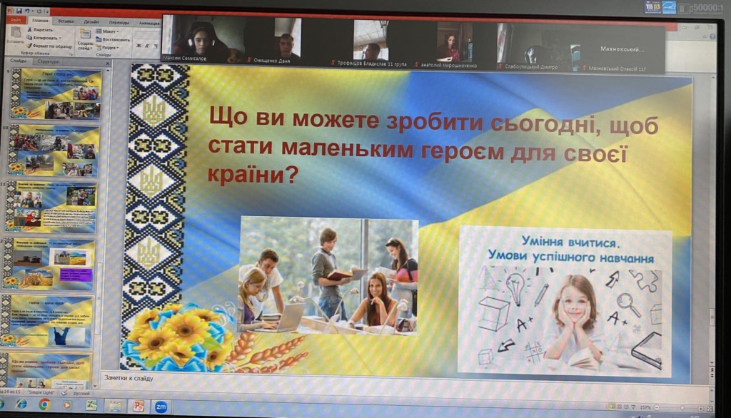 Тому , тема першої виховної години в 21 групі була «Україна-країна героїв».Під час години спілкування , студенти висловлювали свої думки , хто ж такі справжні герої-сучасності.