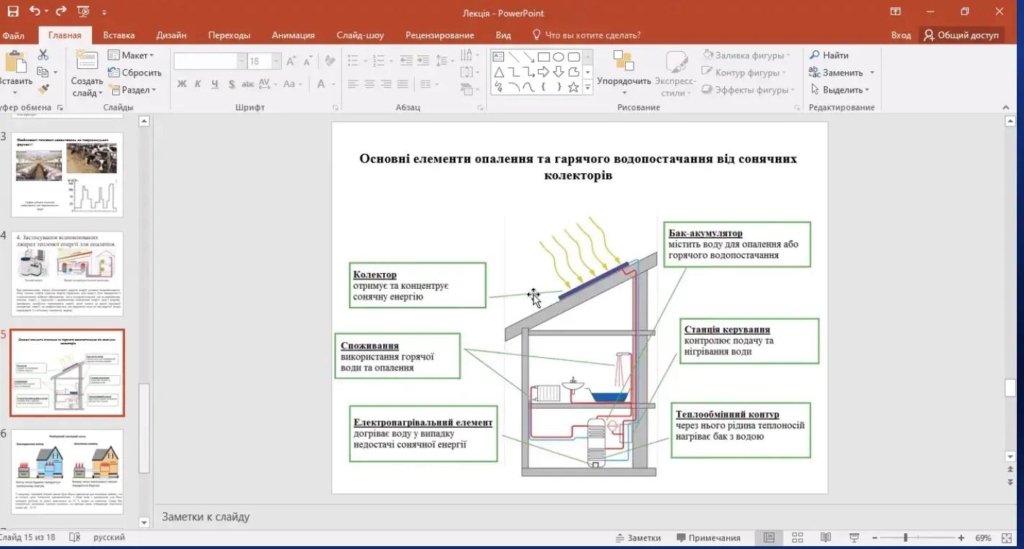 Окремий акцент було зроблено на альтернативних джерелах енергії, зокрема енергії сонця, її перевагах та недоліках. Студенти дізналися, як сонячна енергія може ефективно поєднуватися з іншими системами теплопостачання, створюючи сучасні гібридні рішення.