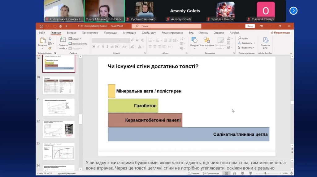 Під час заходу обговорювалися питання підвищення енергоефективності в житлово-комунальному господарстві, сучасні технології утеплення будівель, системи вентиляції та опалення, а також європейський досвід термомодернізації.