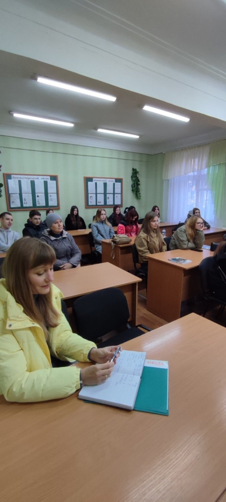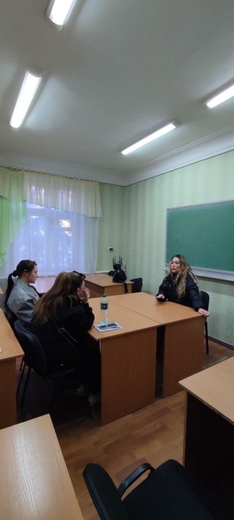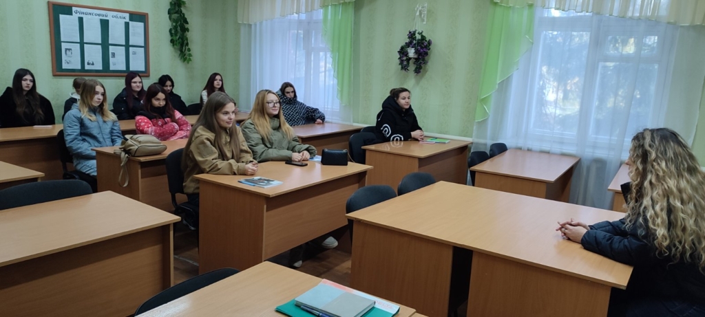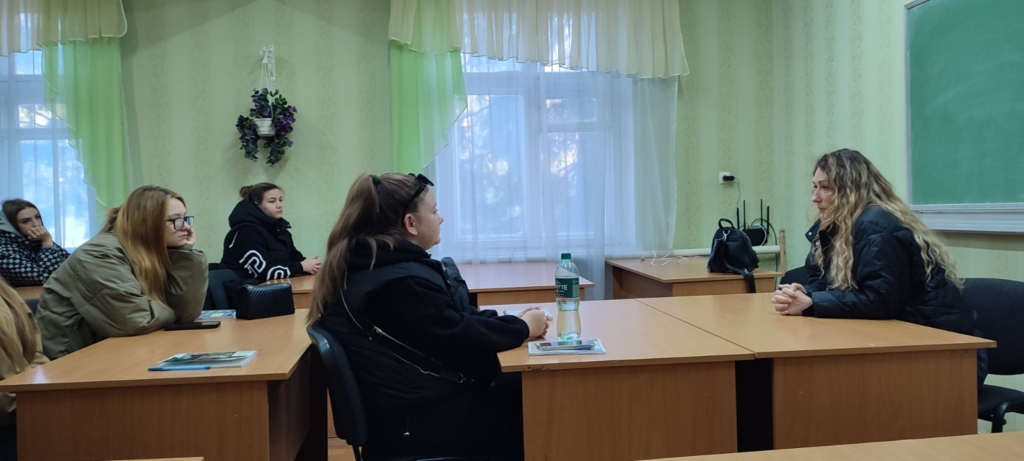 Під час зустрічі Ірина Миколаївна ознайомила студентів із практичними аспектами діяльності страхової компанії та детально розповіла про страхування від нещасних випадків, а також про страхування цивільно-правової відповідальності власників наземних транспортних засобів (ОСЦПВ).