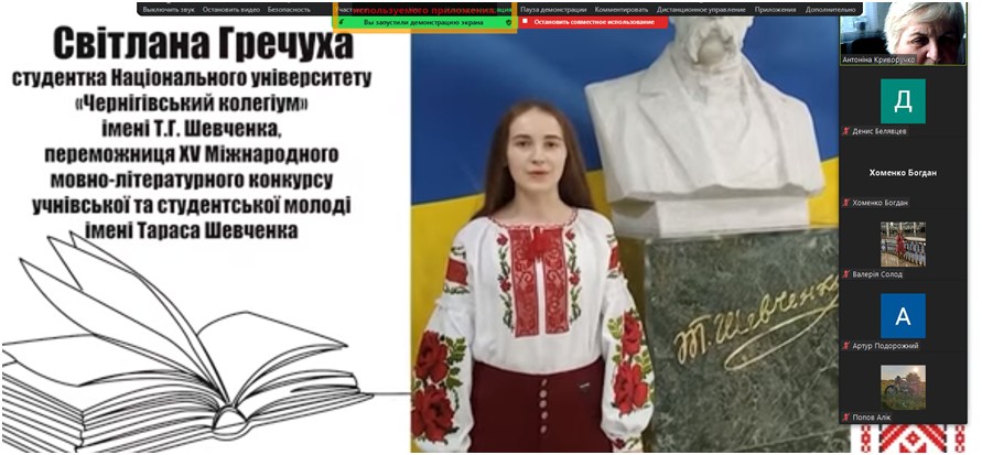 Свідченням глибокої пошани й пам’яті молодого покоління до постаті Кобзаря є ХVІ Міжнародний мовно-літературний конкурс учнівської та студентської молоді імені Тараса Шевченка. Конкурс стартував 7 жовтня 2025 року. До урочистого відкриття конкурсу долучилися студенти коледжу. Вони привітали учасників та прослухали виступи Інни Кільдерової, начальника головного управління середньої освіти Міністерства освіти і науки України, Миколи Жулинського, директора Інституту літератури імені Тараса Шевченка, Олени Івановської, уповноваженої їз захисту державної мови. Конкурс спрямований на вшанування творчої спадщини Тараса Шевченка та піднесення престижу української мови й літератури. Участь у цьому конкурсі свідчить, що молодь замислюється над сенсом життя, що Великий Кобзар для багатьох поколінь українців був, є і залишається символом високих духовних можливостей.
