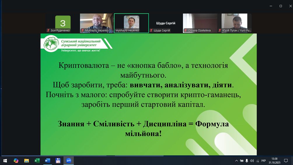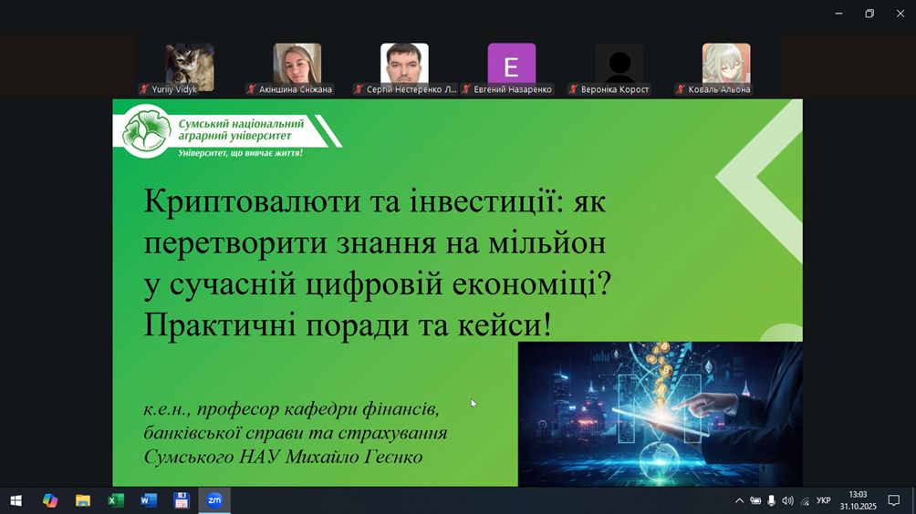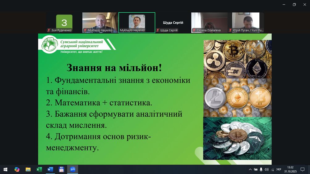 31 жовтня 2025року студенти економічних спеціальностей відвідали гостьову лекцію на тему: «Криптовалюта та інвестиції: як перетворити знання на мільйон у сучасній цифровій економіці? Практичні поради і кейси!», яку провів к.е.н., професор кафедри фінансів, банківської справи та страхування Михайло Геєнко.