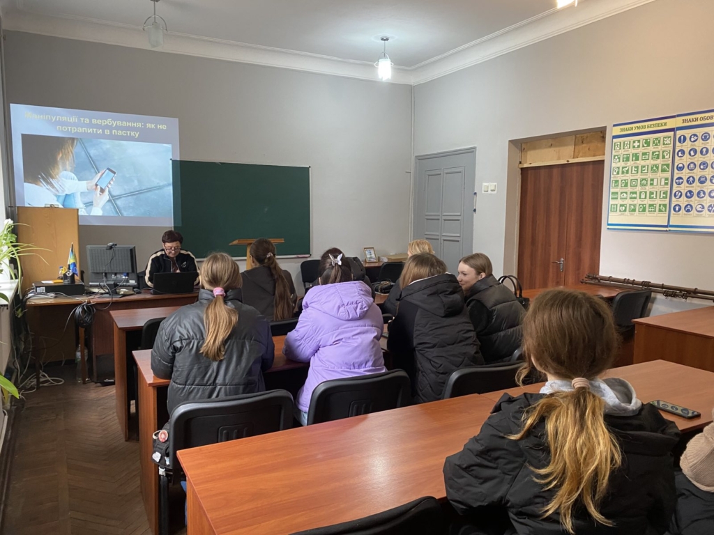 13 жовтня 2025 року було проведено виховну годину для студентів 15 групи на тему «Маніпуляція і вербування: як не потрапити в пастку». Під час виховної години студенти групи ознайомились із сучасними методами вербування підлітків, юридичною відповідальністю за залучення до злочинної діяльності, наслідками для виконавця, а також з практичними правилами безпеки в інтернеті. Було наголошено: вербування — це не гра, а кримінальний злочин; головне — не піддаватися маніпуляціям, зберігати критичне мислення та вчасно повідомляти дорослих або правоохоронців. Студенти отримали рекомендації щодо налаштувань приватності, перевірки інформації та алгоритму дій у разі підозри на вербування. Захід мав важливе профілактичне значення, сприяв формуванню відповідальної громадянської позиції, інформаційної грамотності та безпечної поведінки молоді в цифровому середовищі. Куратор 15 групи Любов ПРОГОННА