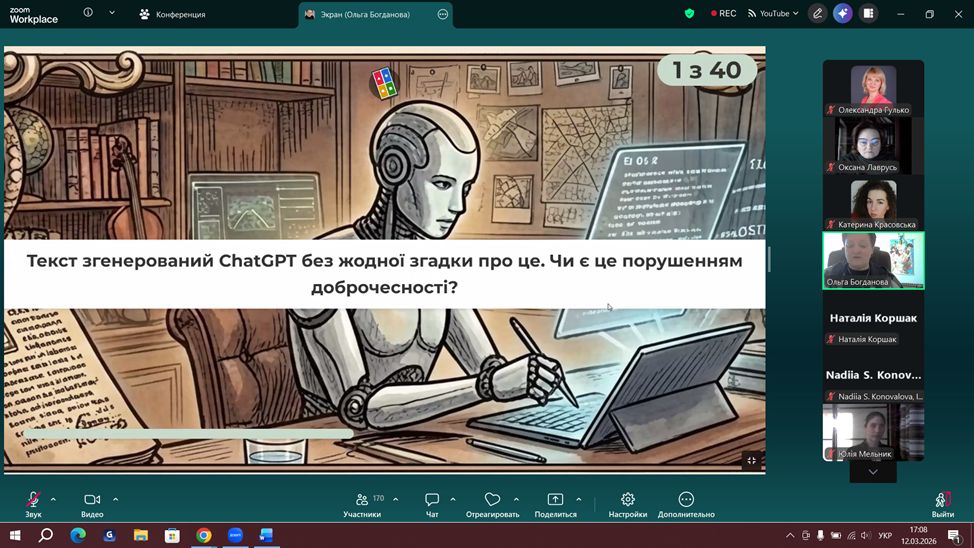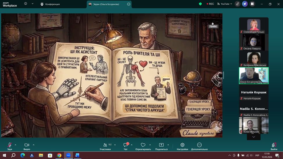 Участь у заході взяла викладачка комп’ютерних дисциплін коледжу Лаврусь О.Г., яка долучилася до професійного обміну досвідом, ознайомилася з сучасними підходами до використання штучного інтелекту в освіті та підвищила власний рівень цифрових компетентностей.