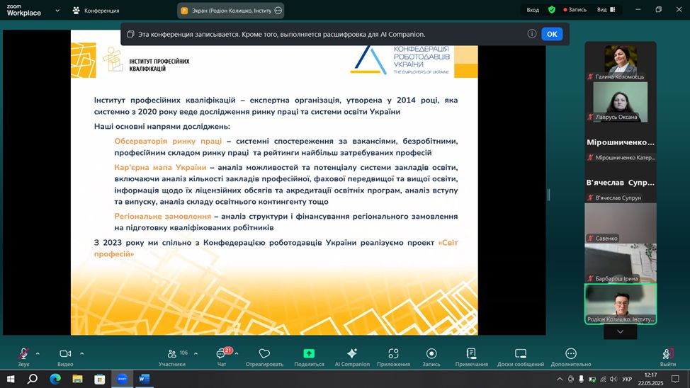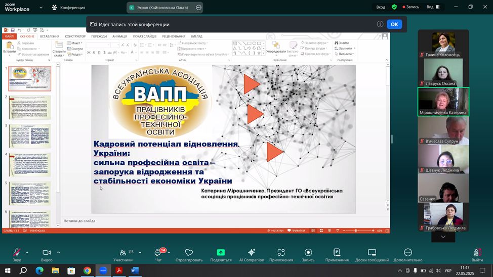 22 травня 2025 року відбулася V Всеукраїнська науково-практична онлайн-конференції «Модернізація змісту професійної освіти в умовах євроінтеграції України -2025».