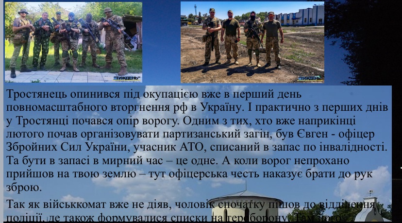 Особливу увагу було приділено і партизанам сусіднього тимчасово окупованого Тростянця. Та партизанам і тероборонівціям Сум.