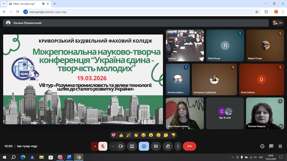 19 березня 2026 року на базі Криворізького будівельного фахового коледжу відбулася науково-творча міжрегіональна конференція «Україна єдина – творчість молодих» (VIII тур) на тему: