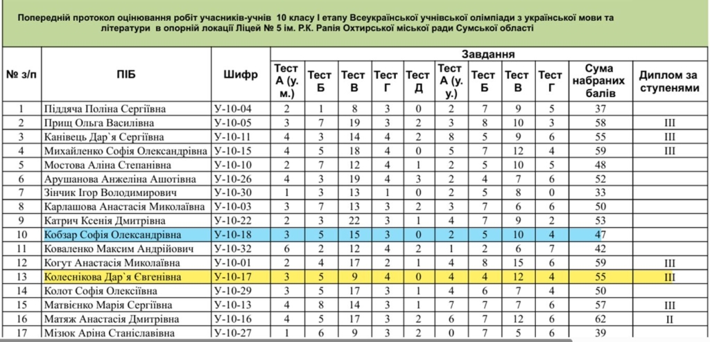 19 жовтня 2025 р. відбувся І етап Всеукраїнської олімпіади з української мови та літератури. Честь коледжу захищали студентки 15 гр. Кобзар Софія та Колесникова Дар’я, яка успішно здобула ІІІ місце серед 32-х учасників! Вітаємо дівчаток та бажаємо нових переможних звершень. Дякуємо за любов до рідної мови. Викладачка Чикалова Н.В.