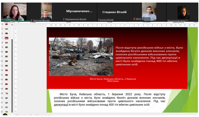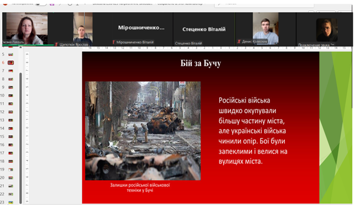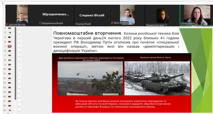 25 квітня 2025 року була проведена година спілкування зі студентами 32 групи спеціальності Агроінженерія на тему: «Повномасштабне вторгнення Росії в Україну: історичний контекст». Охтирка. Місто-герой, яке вистояло.