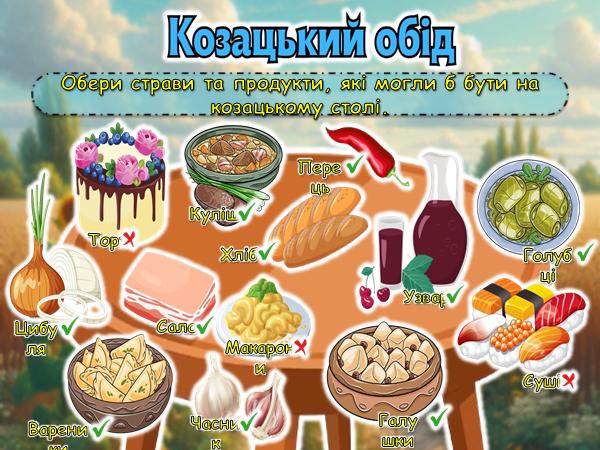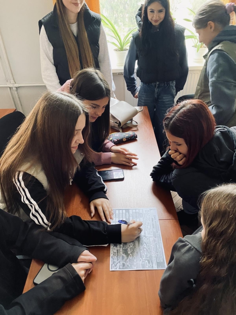 У ході заходу студенти будували міст між минулим і сучасністю, використовуючи схеми та історичні матеріали, дізналися багато цікавих фактів про життя та побут козаків. Вони добирали антоніми до поданих прикметників, визначаючи риси характеру, притаманні захисникам України, розгадували кросворди про славних козаків та їх подвиги.