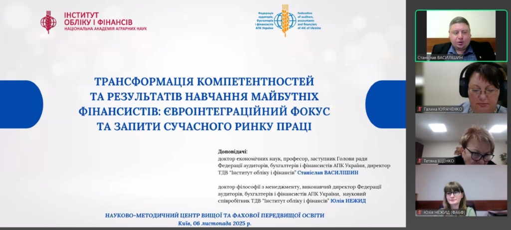 06 листопада 2025 року педагогічні працівники ВСП “Охтирський фаховий коледж СНАУ” долучилися до роботи круглого столу закладів фахової передвищої освіти на тему: «Підготовка фахівців для банківської сфери та бізнесу: гармонізація ринку праці та ринку освітянських послуг за спеціальністю Фінанси, банківська справа, страхування та фондовий ринок»