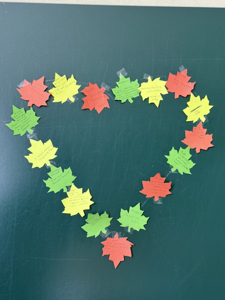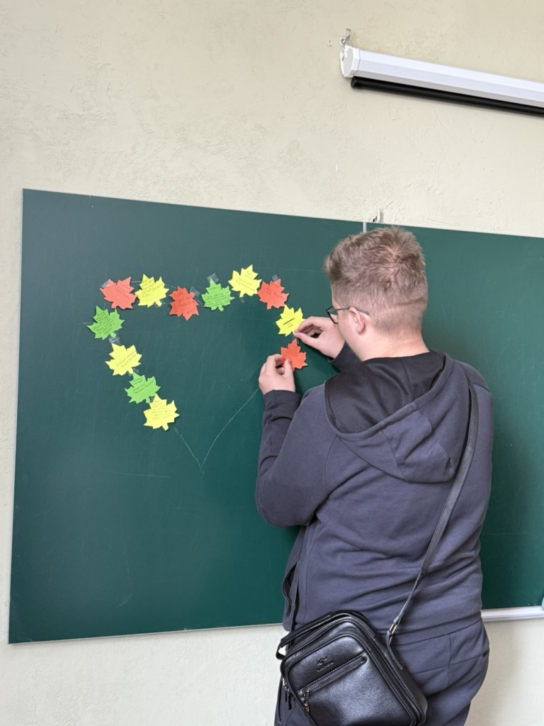 Наступним етапом стала гра «Очікування». Кожен студент отримав маленький листочок, на якому написав свої сподівання від навчання у коледжі та перебування в новому колективі. Серед очікувань звучали: отримати цікаві знання, знайти справжніх друзів, розвинути свої здібності, досягти успіхів у творчості, навчитися працювати в команді. Усі листочки утворили “Серце очікувань», яке стало яскравим символом єдності та спільних прагнень групи.