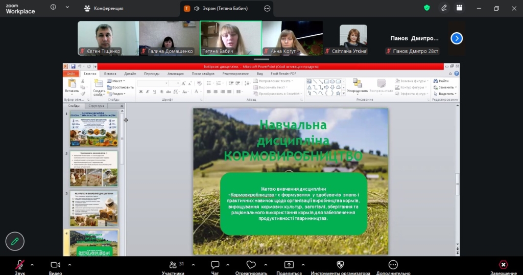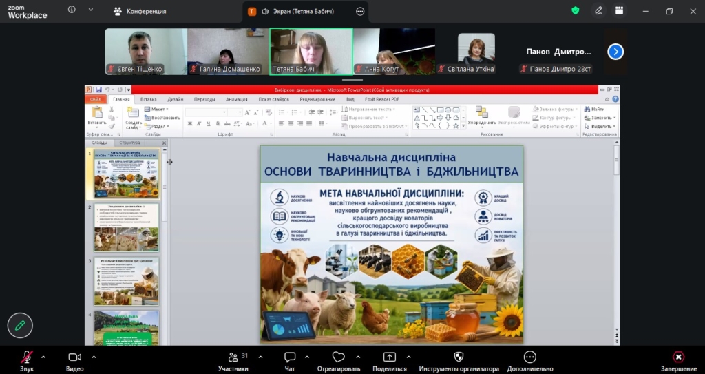 16 квітня відбулося ознайомче представлення вибіркових освітніх компонентів для студентів освітньо-професійної програми «Агрономія». Під час заходу викладачі презентували перелік дисциплін, розкрили їх зміст, мету та практичну спрямованість, а також окреслили особливості вивчення кожного курсу.