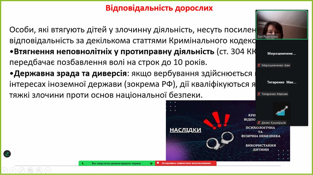 Вербування молоді в сучасних умовах, особливо в Україні, перетворилося з абстрактної небезпеки на реальну загрозу національній безпеці. Основна проблема полягає в активному використанні російськими спецслужбами та кримінальними угрупованнями інтернету для втягнення підлітків у диверсійну та протиправну діяльність. Тому перед навчальним закладом постає задача – захист молоді від цієї небезпеки через превентивні заходи.