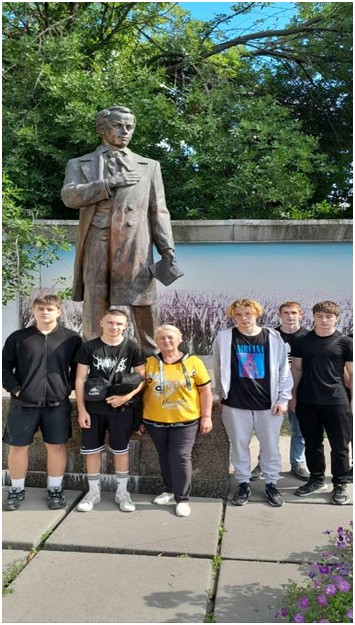 «Дім з колонами» – через дорогу, колишня вище початкова школа, в якій навчався Іван Лозов’ягін, непокірний бунтівний «мазепинець». Ось так і завершилася наша подорож містом Охтирка та місцями, що розповідають