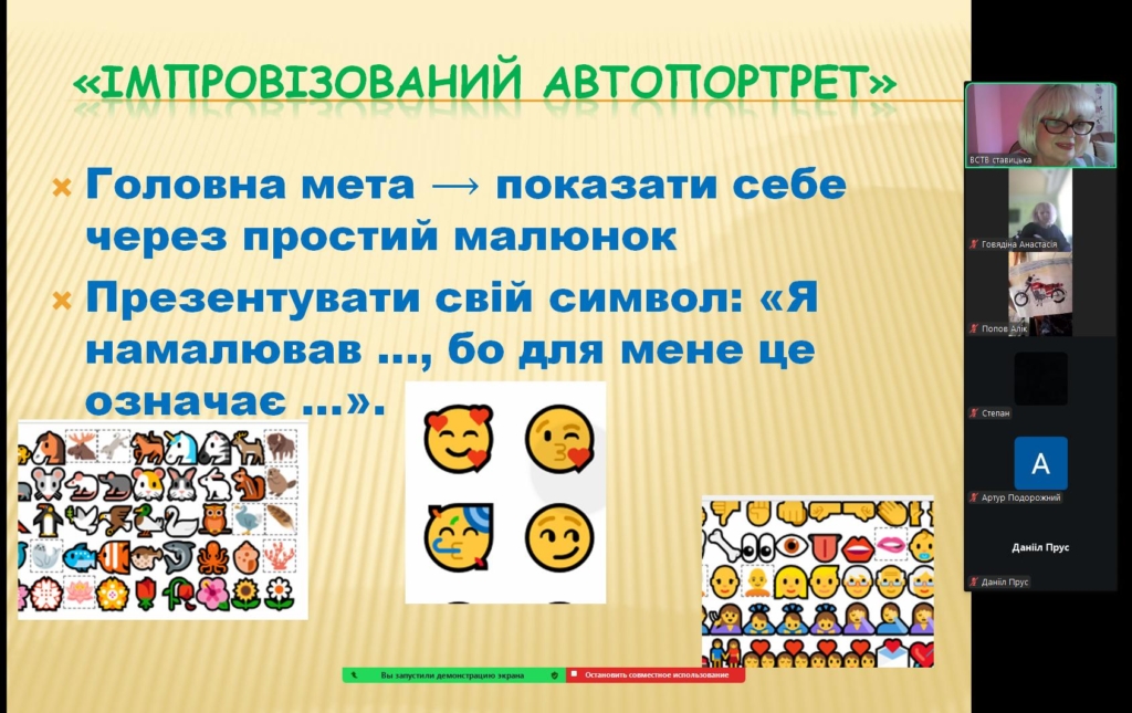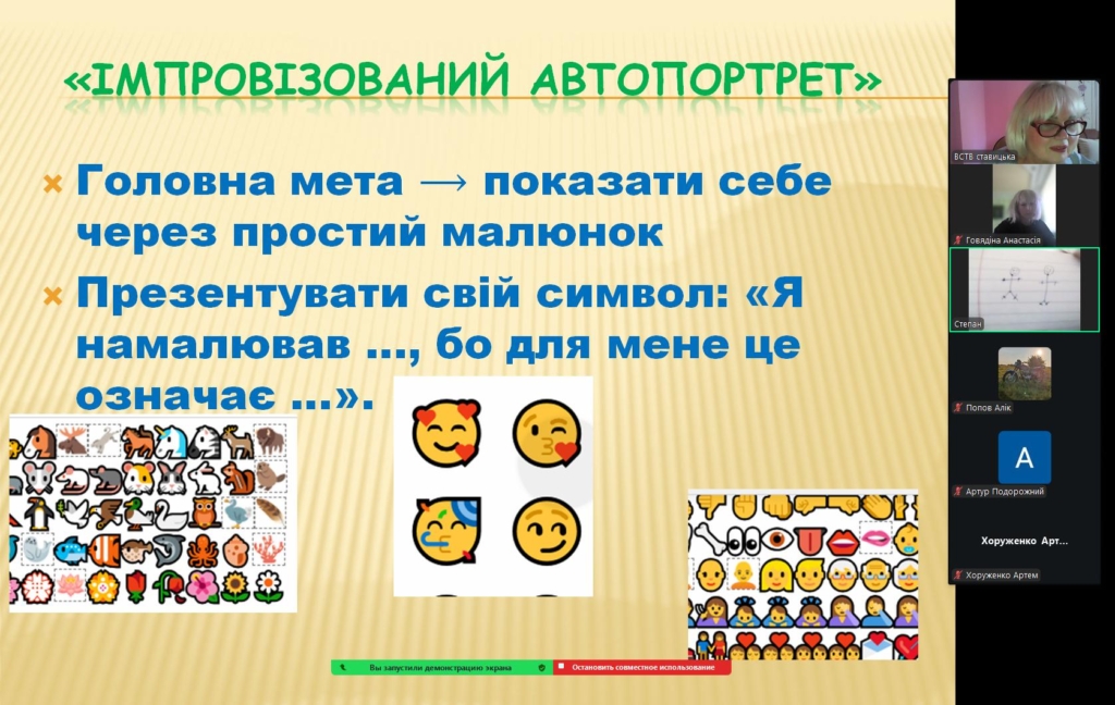 Захід розпочався з цікавої розминки «Імпровізований автопортрет», де студенти швидко створювали малюнки, що відображали їхній характер, захоплення, мрії та цінності в житті. Така вправа допомогла не лише розкрити творчий потенціал кожного, а й побачити, наскільки різнобарвною та натхненною є їхня нова група.