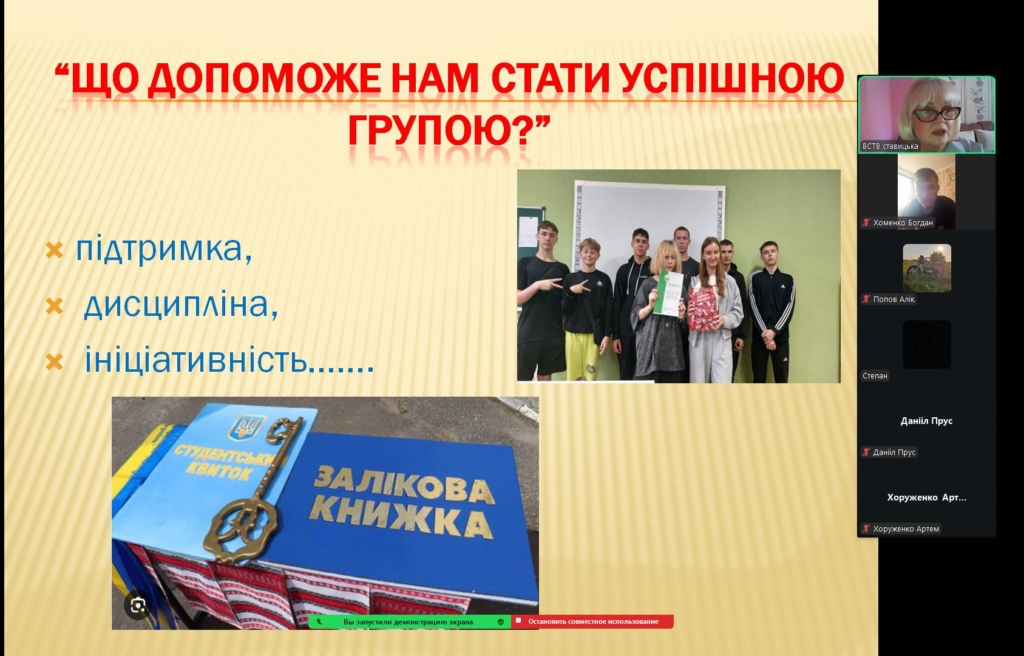 Далі відбулося обговорення важливого питання: що допоможе нам стати успішною групою. Студенти ділилися думками про підтримку, взаємоповагу, дисципліну, ініціативність, уміння слухати одне одного й разом долати труднощі.
