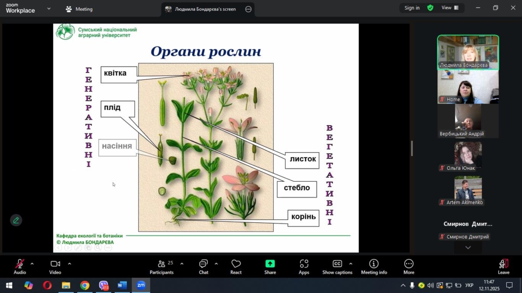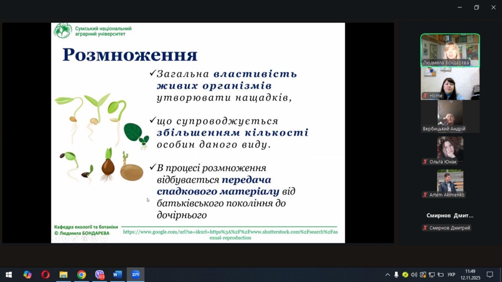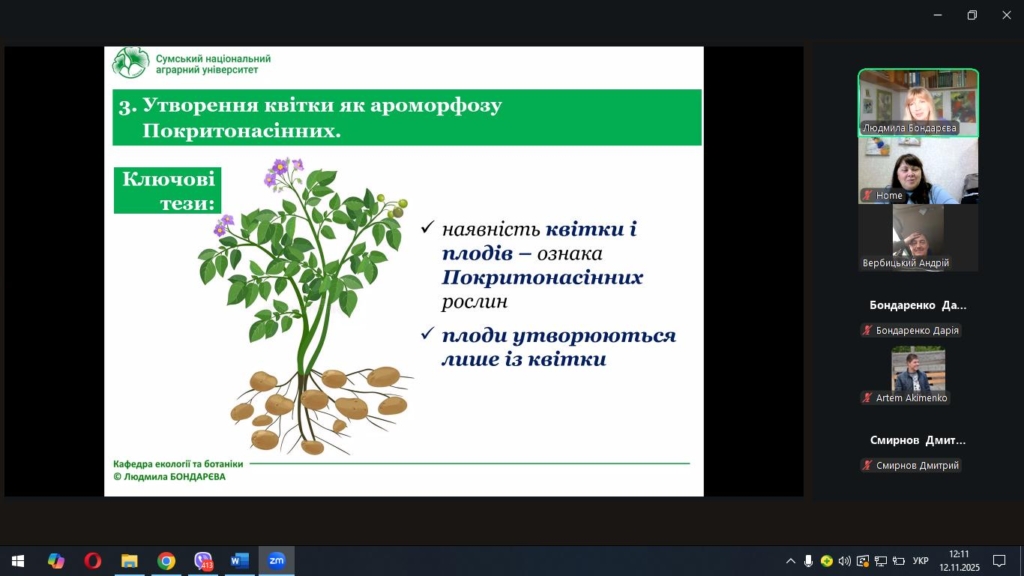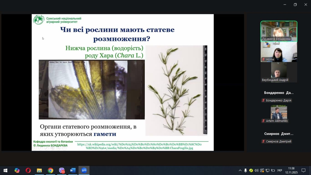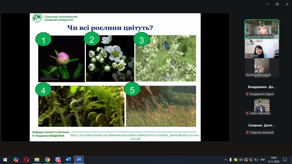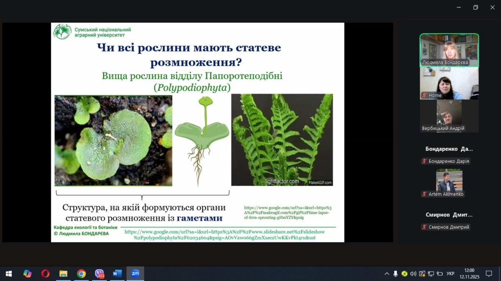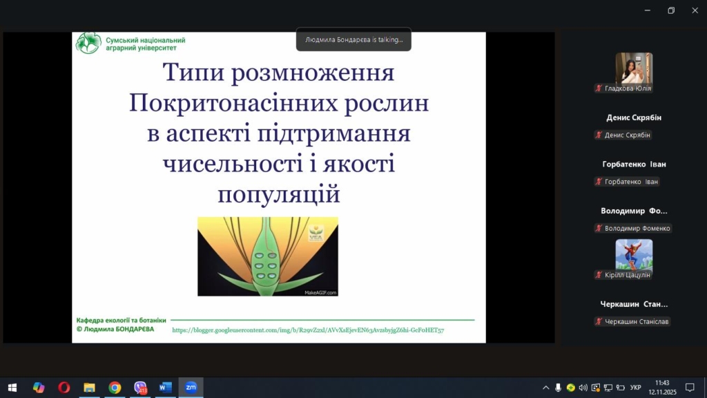Під час лекції Людмила Миколаївна розкрила біологічні та екологічні аспекти процесів розмноження покритонасінних рослин, звернула увагу на взаємозв’язок між типом розмноження та стійкістю популяцій у природних і агроекосистемах.