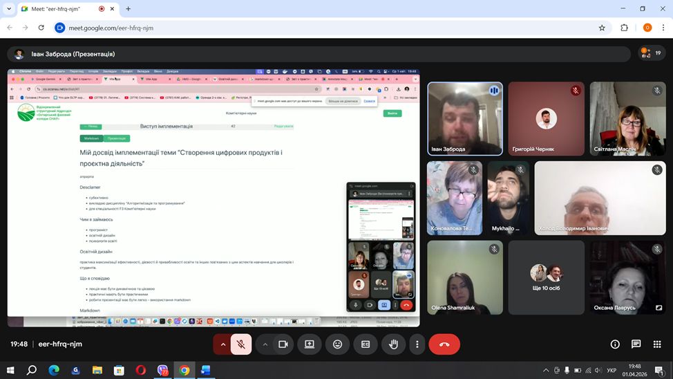 Окрему увагу було приділено презентації авторського освітнього середовища, розробником якого є Заброда І.С. Дана платформа є інноваційним рішенням, що покликане об’єднати навчальні ресурси в єдину цифрову інфраструктуру.