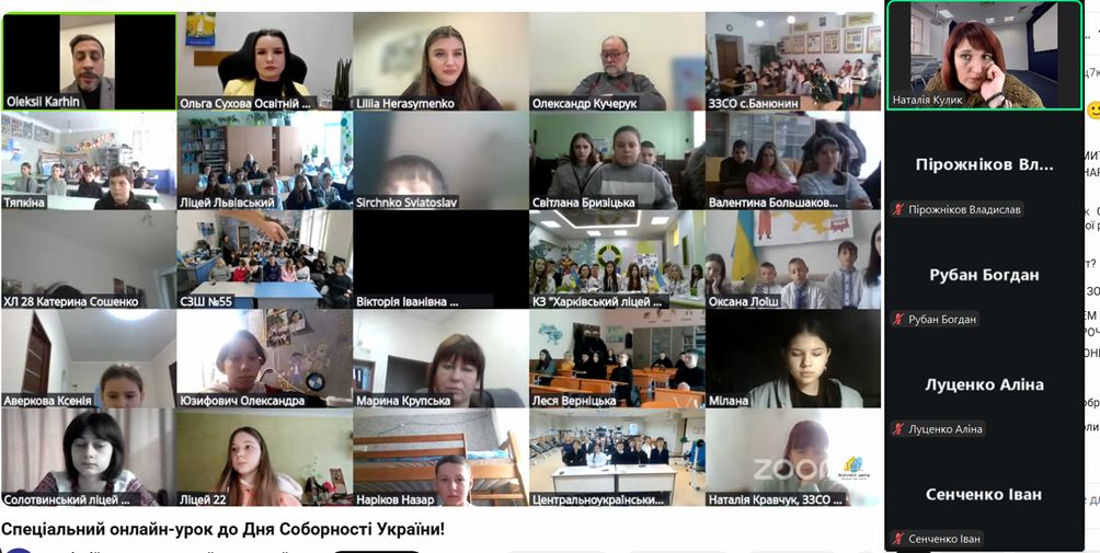 Урок, присвячений Дню Соборності, відкрив Голова Верховної Ради України Руслан Стефанчук. Після цього слово передали Олексію Каргіну, ветерану російсько-української війни, а нині співробітнику апарату Верховної Ради України, який підкреслив значущість цього свята у сучасних реаліях.