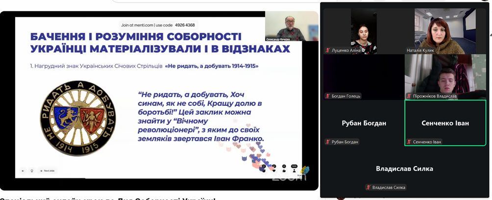 22 січня вся Україна відзначила День Соборності! Студенти 24-ї групи спеціальності Будівництво і цивільна інженерія зареєструвалися та долучилися до перегляду особливого онлайн-уроку, організованого Освітнім Центром Верховної Ради України з нагоди цього свята.