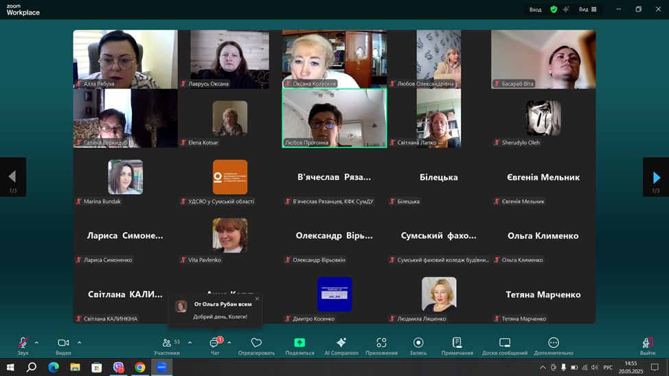 20 травня 2025 року відбувся тренінг для всіх викладачів ЗФПО Сумської області з антикорупції та доброчесності. Якій провела Рябуха А.П. на ньому були присутні викладачі ВСП “Охтирський фаховий коледж СНАУ”