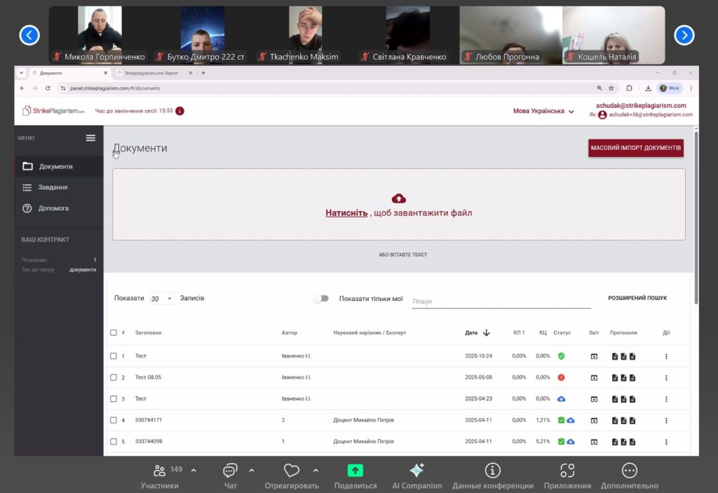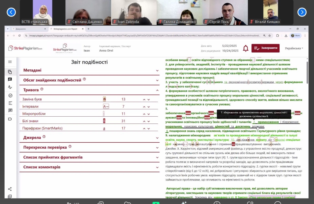 З метою підвищення рівня обізнаності викладачів та студентів щодо академічної доброчесності, 27 жовтня 2025 року було проведено воркшоп на тему «Новації програми Strikeplagiarism».