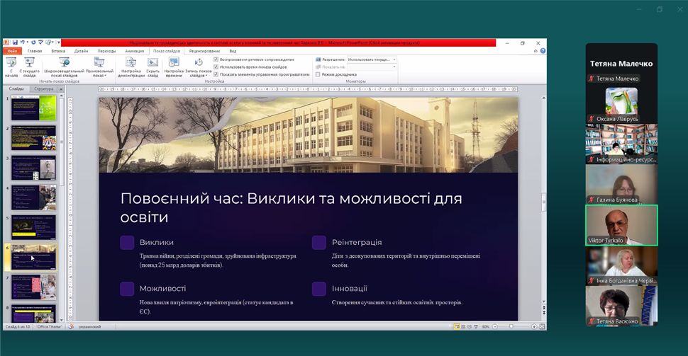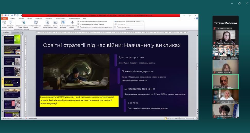 – військово-патріотичне виховання учнівської молоді в умовах воєнного стану;