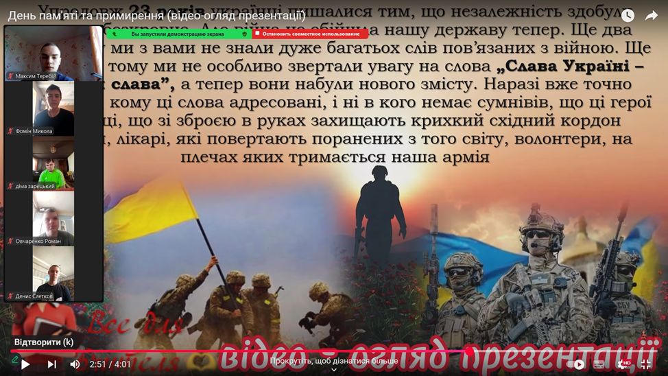 У нових умовах освітнього процесу, складної епідеміологічної ситуації педагоги коледжу знаходять нові ефективні шляхи проведення виховної та профілактичної роботи зі студентами. Так, куратором Зінченко В.В. зі студентами 31 групи проводяться виховні заходи на свіжому повітрі, так звані “зелені уроки”, що дає змогу студентам отримувати інформацію в неформальній обстановці та краще її засвоювати.